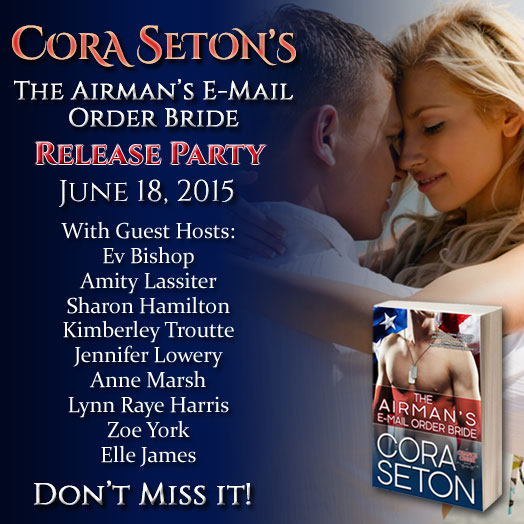 To celebrate her Airman, Cora’s throwing a Facebook party and we’re all invited to attend! There will be tons of door prizes and free books, great chat with nine guest authors–Amity Lassiter, Sharon Hamilton, Kimberley Troutte, Jennifer Lowery, Anne Marsh, Lynn Raye Harris, Zoe York, and Elle James–and miscellaneous fun and games. Please come and join in the fun. Just click this link, then show up. 🙂 I’ll be in and out of the party room all day, and I’ll be co-hosting a special slot 1:00 – 1:30 PST. Hope to see you there!