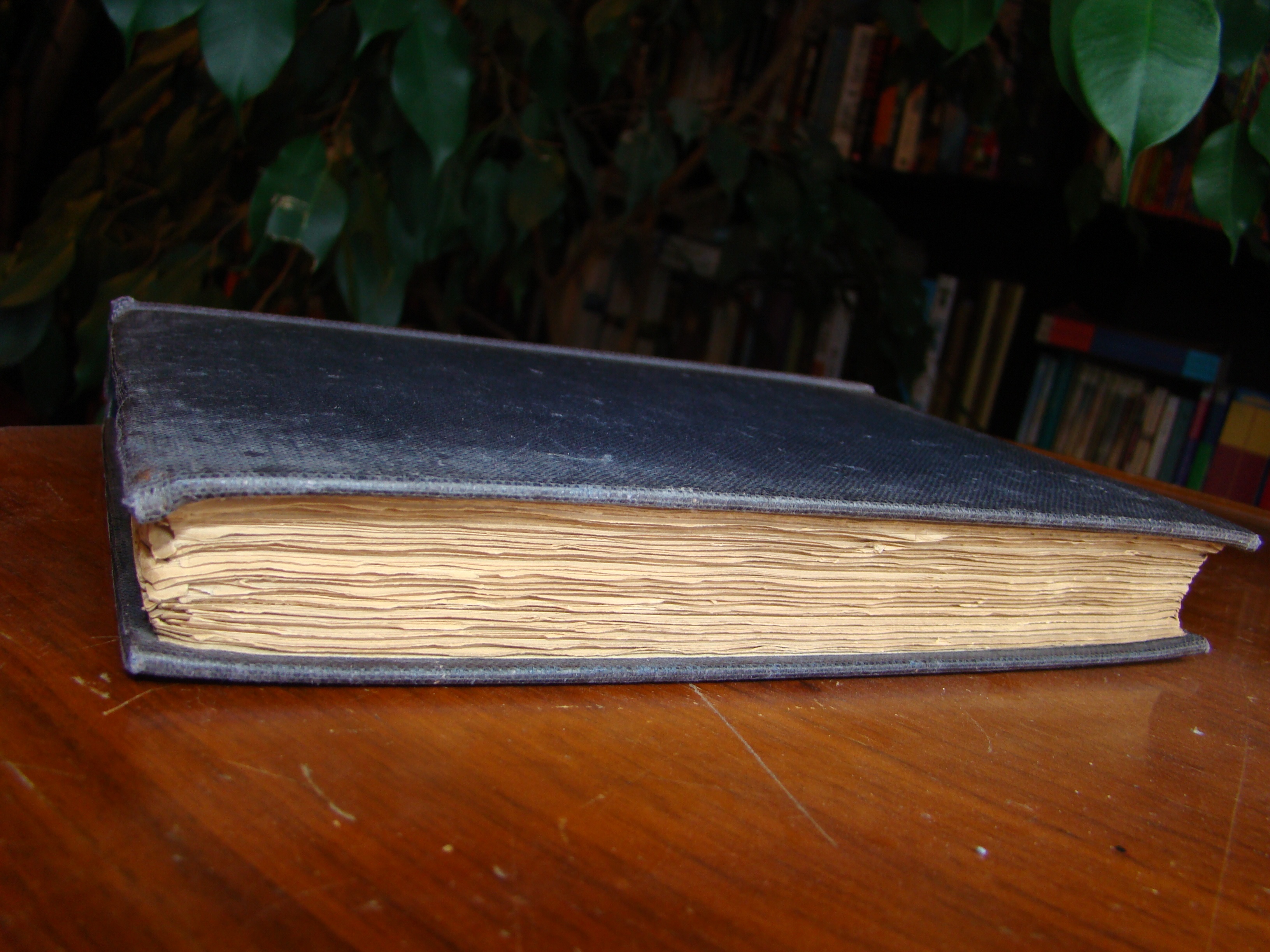 It’s hard to explain how gorgeous this book is—from his rough-edged, slightly discoloured with age pages, to faded, well-worn linen cover, to gold-lettered spine—gorgeous. And serious. (None of this author name and title and loud picture spilled gaudily across front and back for this fella.)