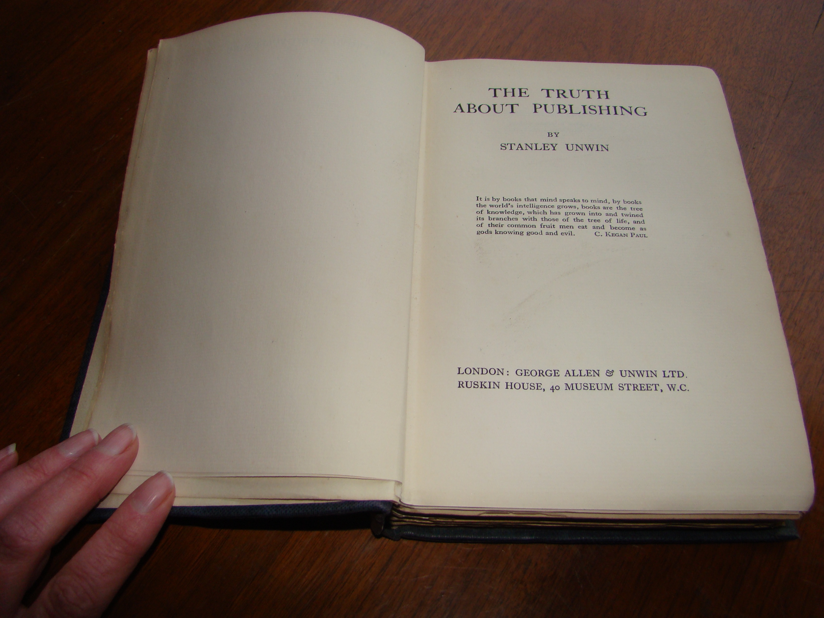 An ancient book. A treasure. A tome first printed in 1926. The Truth About Publishing by Stanley Unwin.